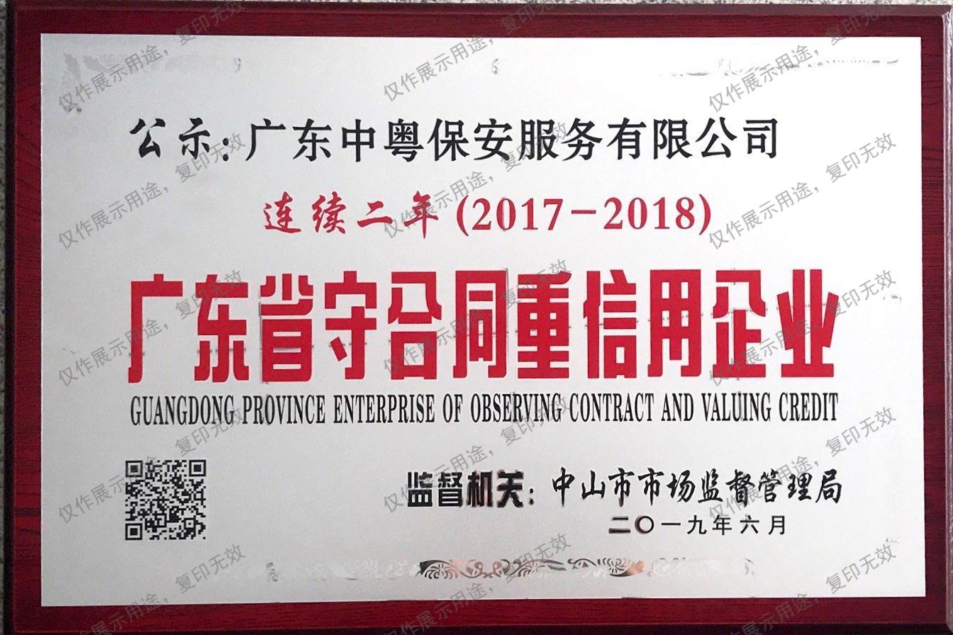 連續(xù)二年(2017-2018)廣東省守合同重信用企業(yè)